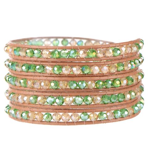 August Peridot Wrap Bracelet is made with breathtaking Peridot beads around wrapped light brown leather. This beautifully crafted bracelet is a staple piece that belongs in every girl's closet.
