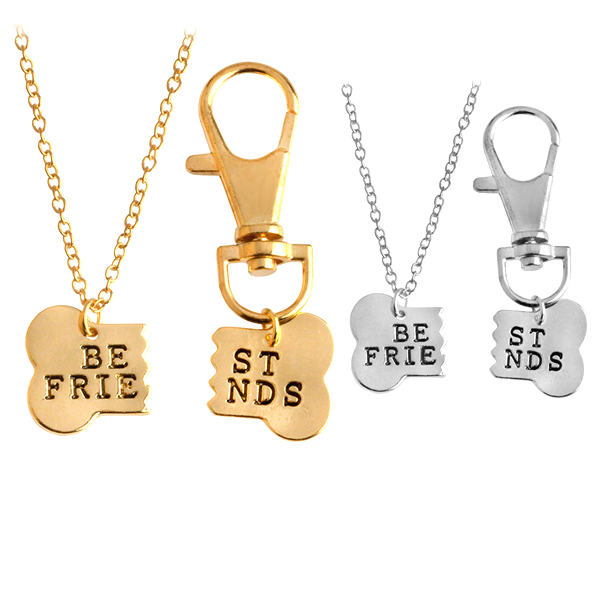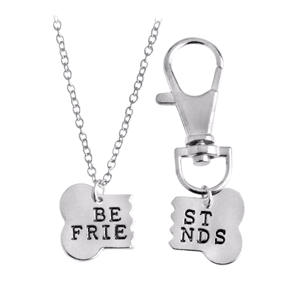 We all know your best friend is your dog, so why not show it to the world with the Best Friend Dog Bone Pendant Key Chain Set. The perfect combination to show who your best friend is. Cute and classy, this necklace is the perfect accessory for any outfit. Makes a great gift for that dog lover in your life!