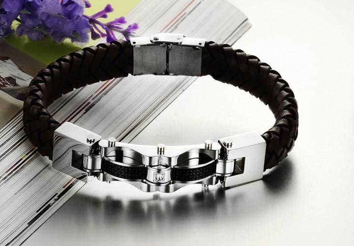 Made with durable stainless steel and thick weaved leather, this bracelet is a great classic look with a modern twist that will perfectly fit any man's personality. Wear with any outfit. A comfortable fit and unique design.