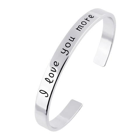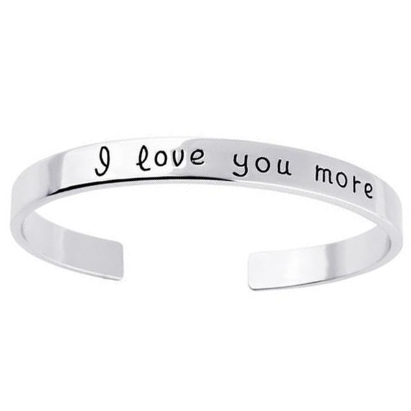 Simple yet sophisticated. An understated essential, this Love Bangle offers a touch of affection with the word "I Love You More" hand stamped across the surface. A truly meaningful gift to share with someone special on any upcoming occasion.
